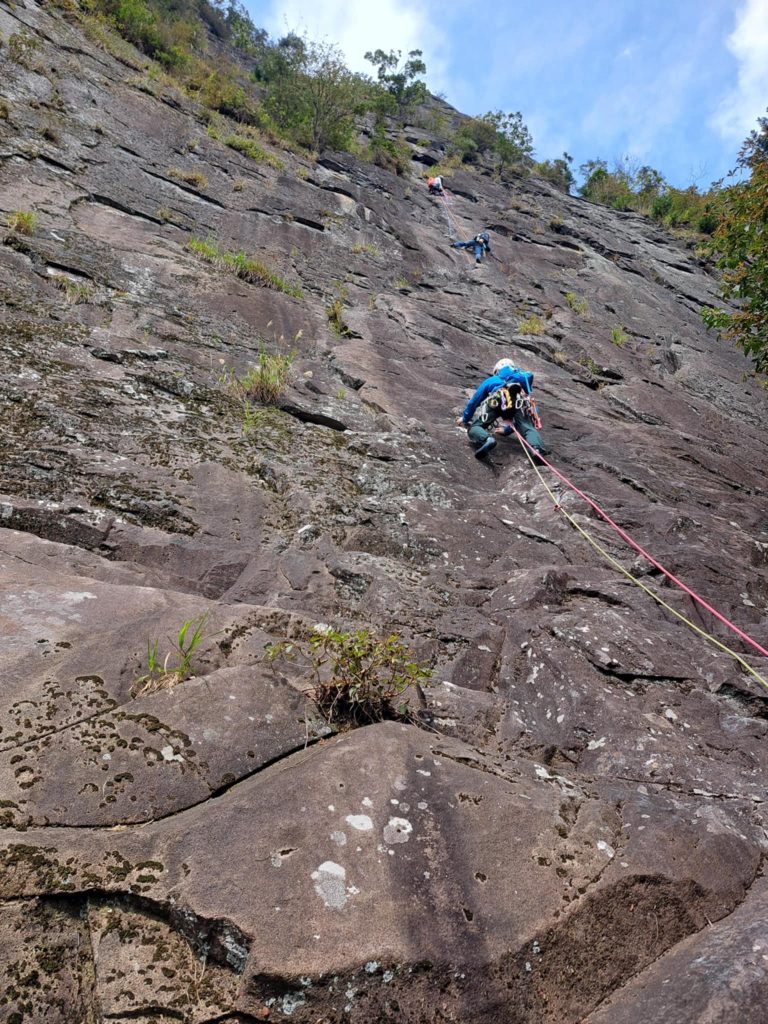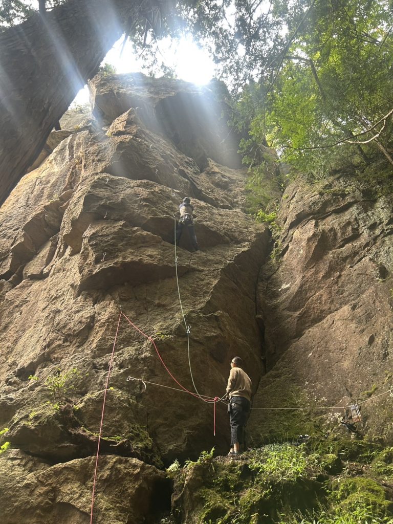 日程: 2025年10月5日(日)山域: 上州子持山獅子岩参加者: 齋木、石川、他1 (記:齋木) ホームジムのBLEAUのスタッフさんから「マルチ連れてって」のご要望をいただき子持山へ行ってきました(みんなBLEAU遊びにきてネ) 駐車場から歩き始めたら雨が降り始めて... 2025年山行2509 瑞牆山