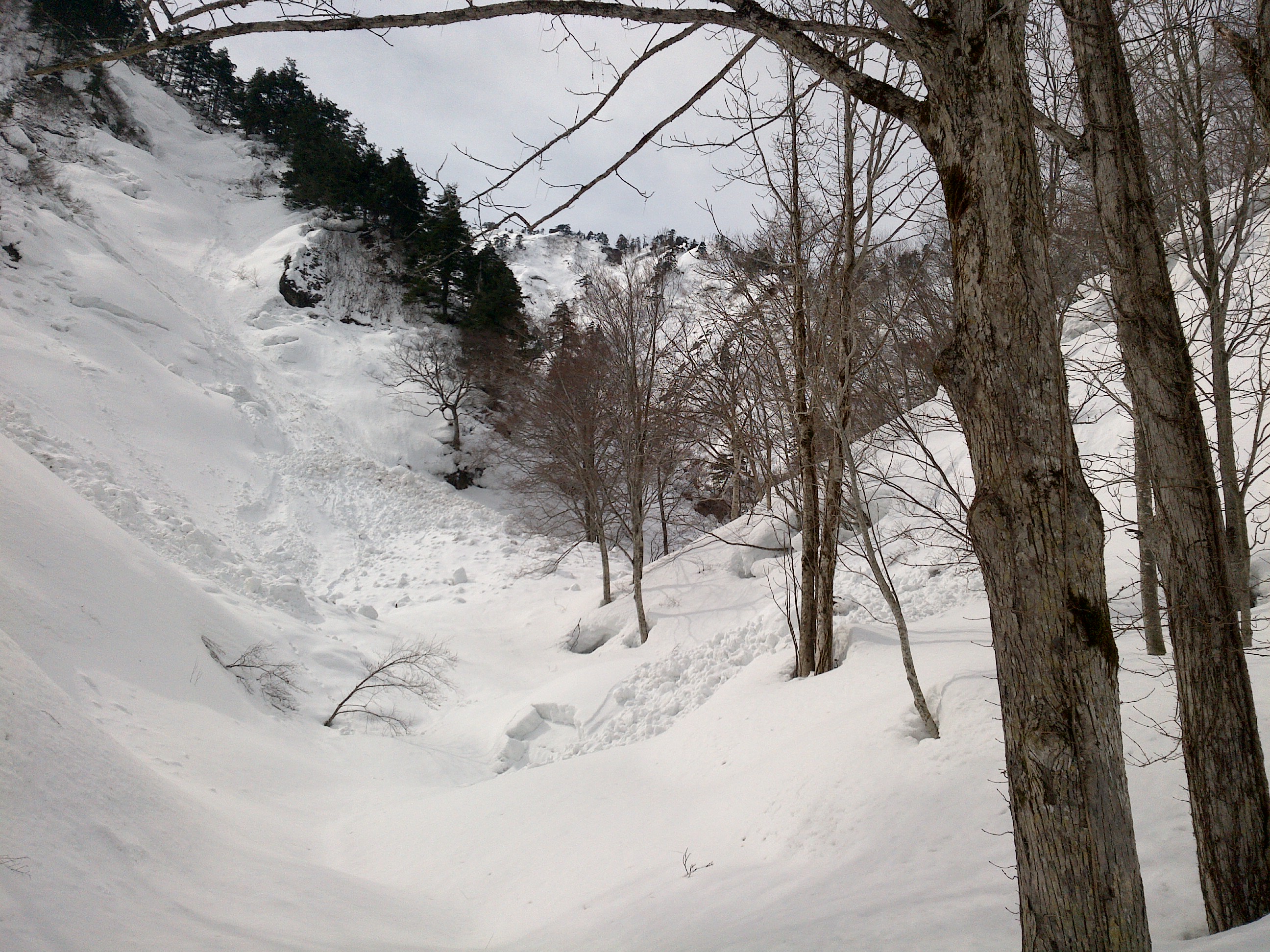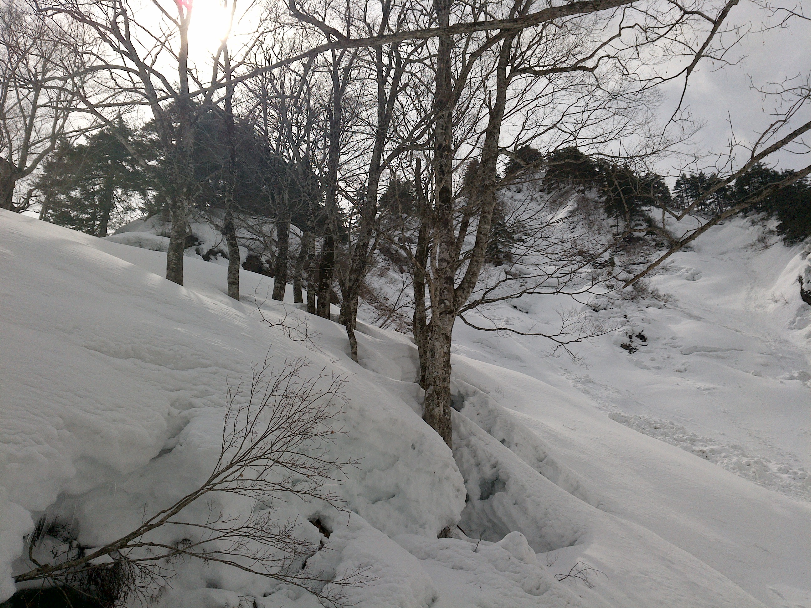 足拍子川を覆っていた雪もところどころが割れてきており若干ややこしい。