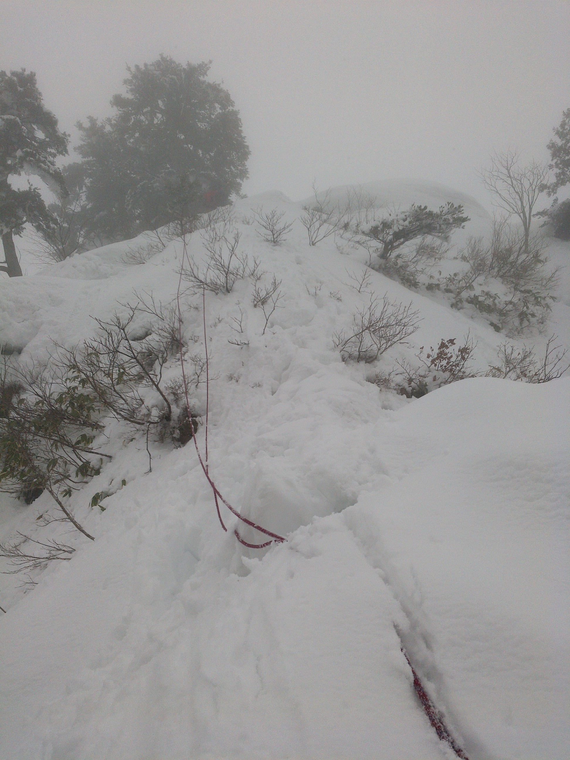 一か所ギャップのところで懸垂してから西側を回り込むところ(直登もできるが)でロープを出す。あとは荒沢山まですぐだった。