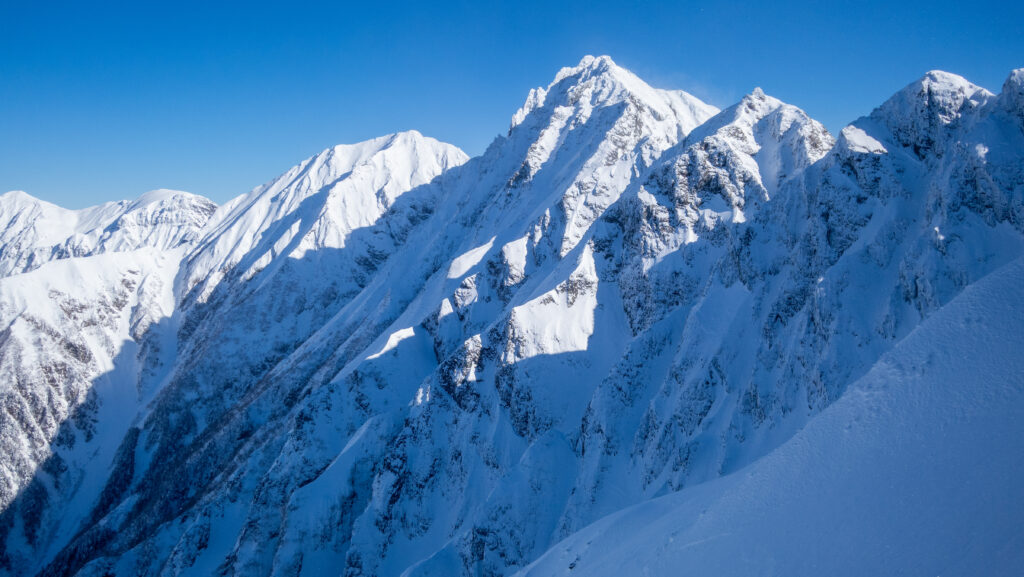 案の定加藤さんもラッセルで汗だくになって満足げでしたし、何より眺望も素晴らしい上、ルートファインディングや不安定な雪の処理、岩稜歩きと飽きさせない内容でした。また、天気のおかげもあり、山頂まで計画時間ドンピシャ、下山で1時間の巻きだったのがなにより快感です。終わりよければすべてよし、2025年最高!