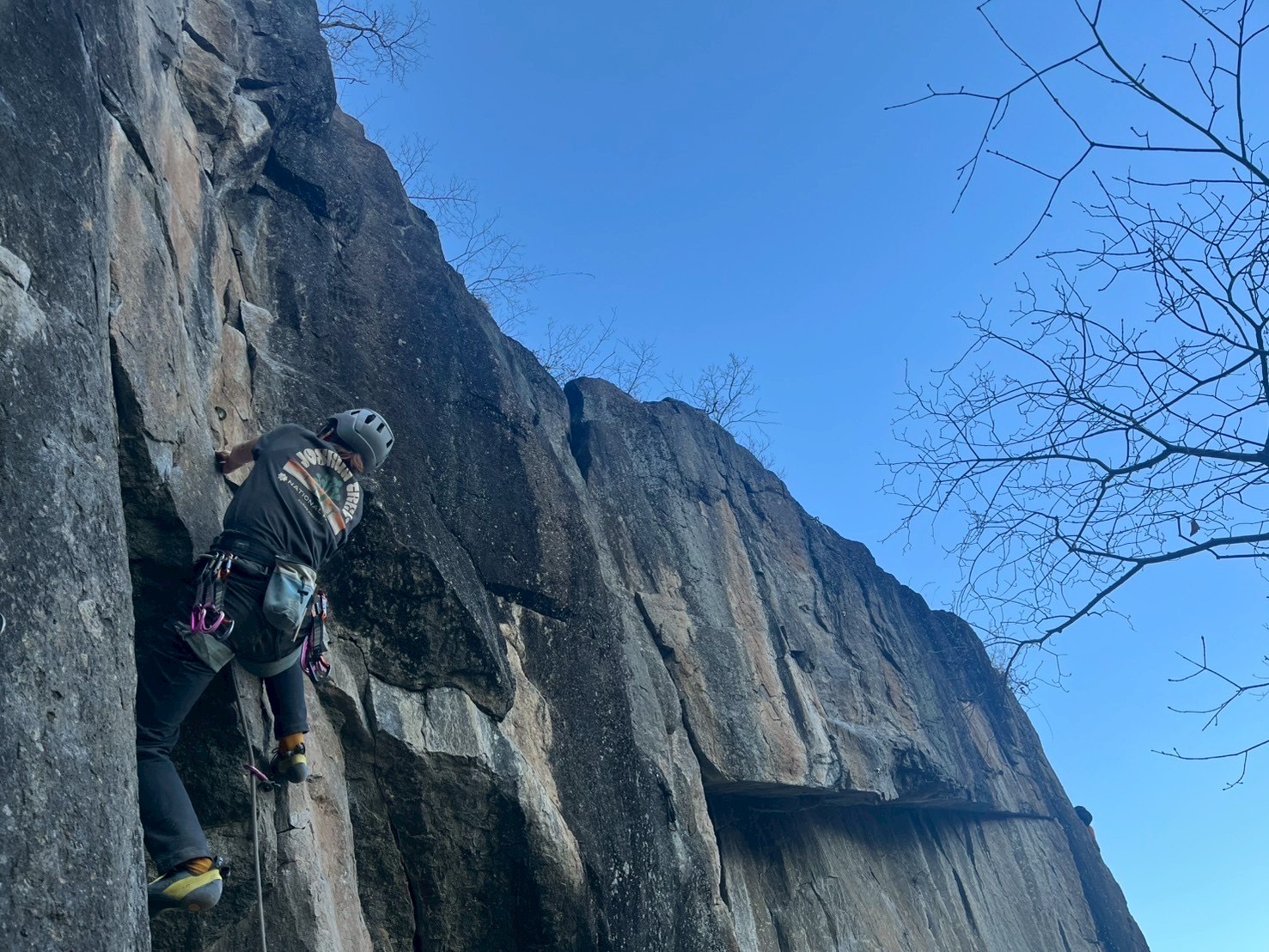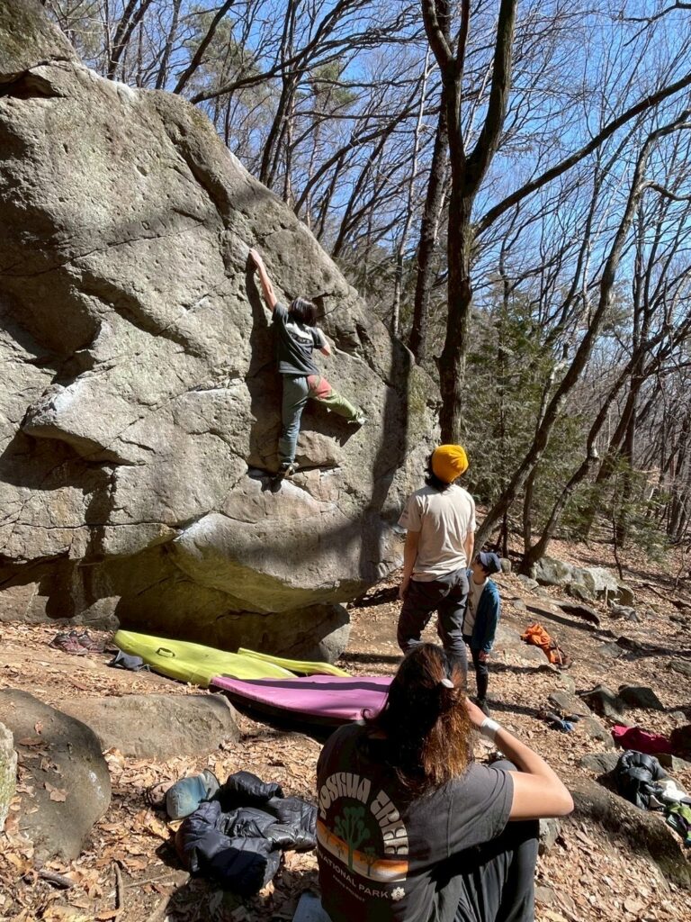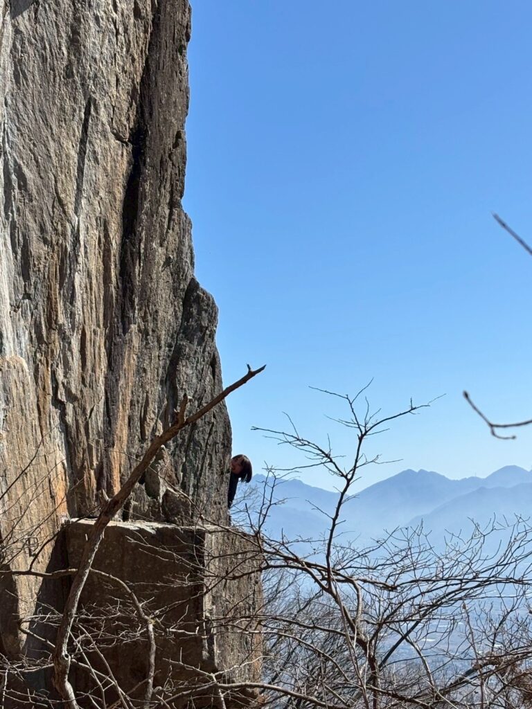 この日は研究者の男の子も一緒に登った。途中からメンバーのうち2人は男の子の話に夢中になり、岩の隣で茶話会が行われていた。😇