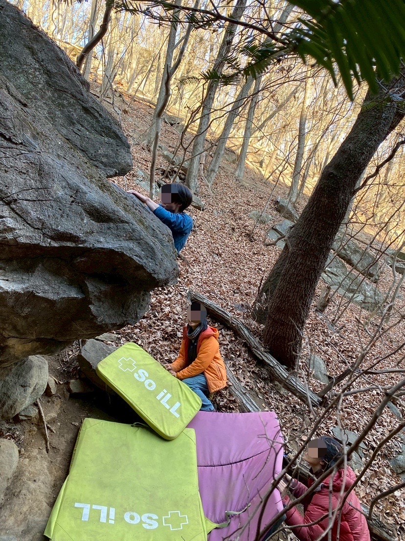この日は研究者の男の子も一緒に登った。途中からメンバーのうち2人は男の子の話に夢中になり、岩の隣で茶話会が行われていた。😇
