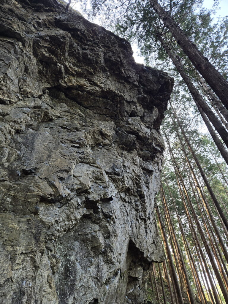 岩質:チャート 岩面:たぶん西向き 駐車場3台位 アプローチ10分位 賽銭箱に駐車場代500円をチャリ〜ンと投げ込み、いつものアプローチを辿ろうと登っていくと明らかに山道が整備途中…伐採され道幅が5m程あり岩場の直前まで続いてた。北川の岩場を盛り上げるためなのかはわからないが歩きやすい(^^)