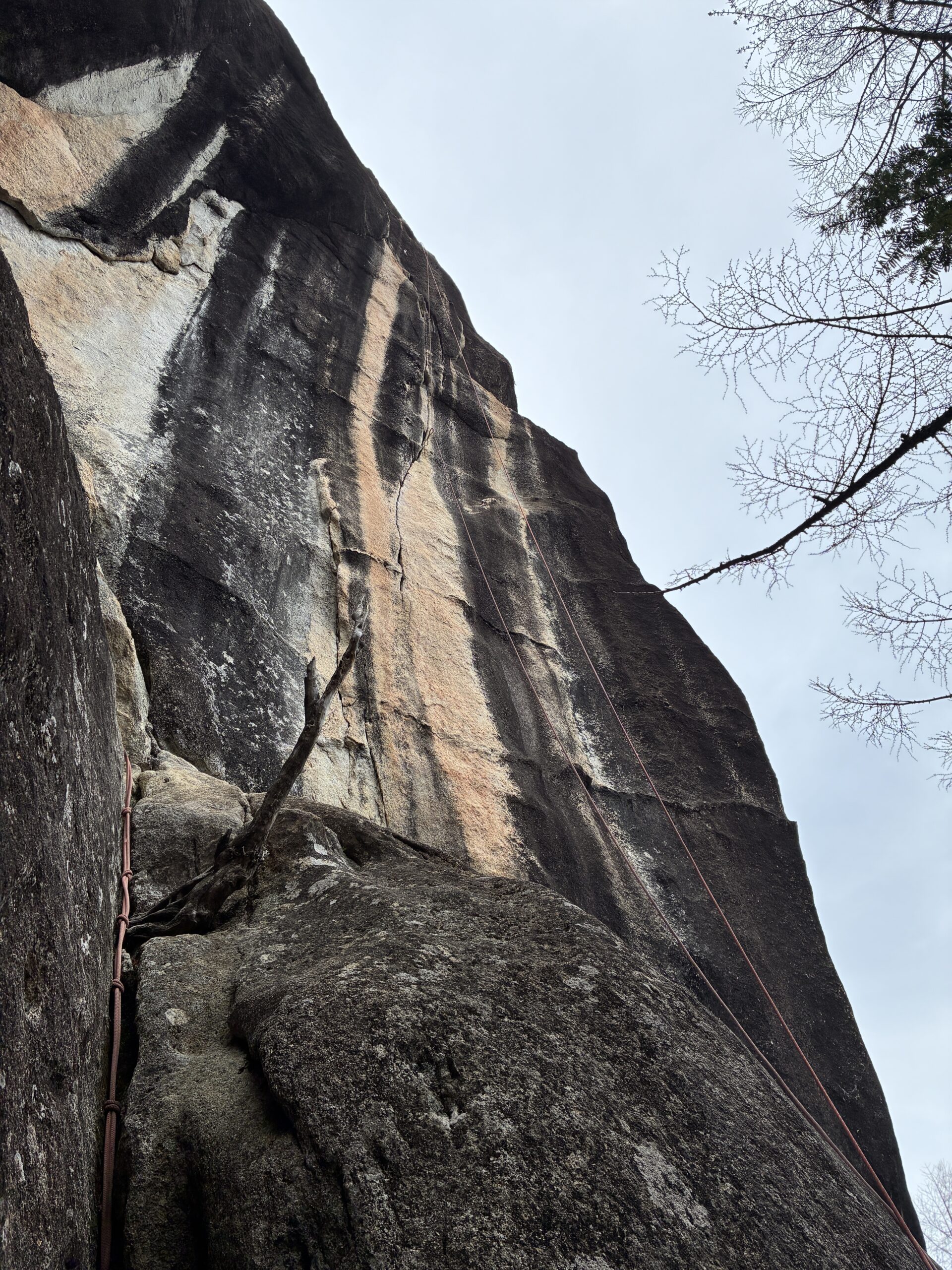 続いてトライしたのは「イムジン河」。写真は見たことがあったが、横から見ると歪な形状をしており威圧感を感じる。ご一緒したTさんはすでにRPしているとのことでカムセットを教えてもらいながらトライ。結果3tryで登ることができ、トップロープリハなし、エイドなしでグラウンドアップを意識して登ることができて満足です。細かいカム、ナッツでランナウトするドキドキ感、最高でした!
