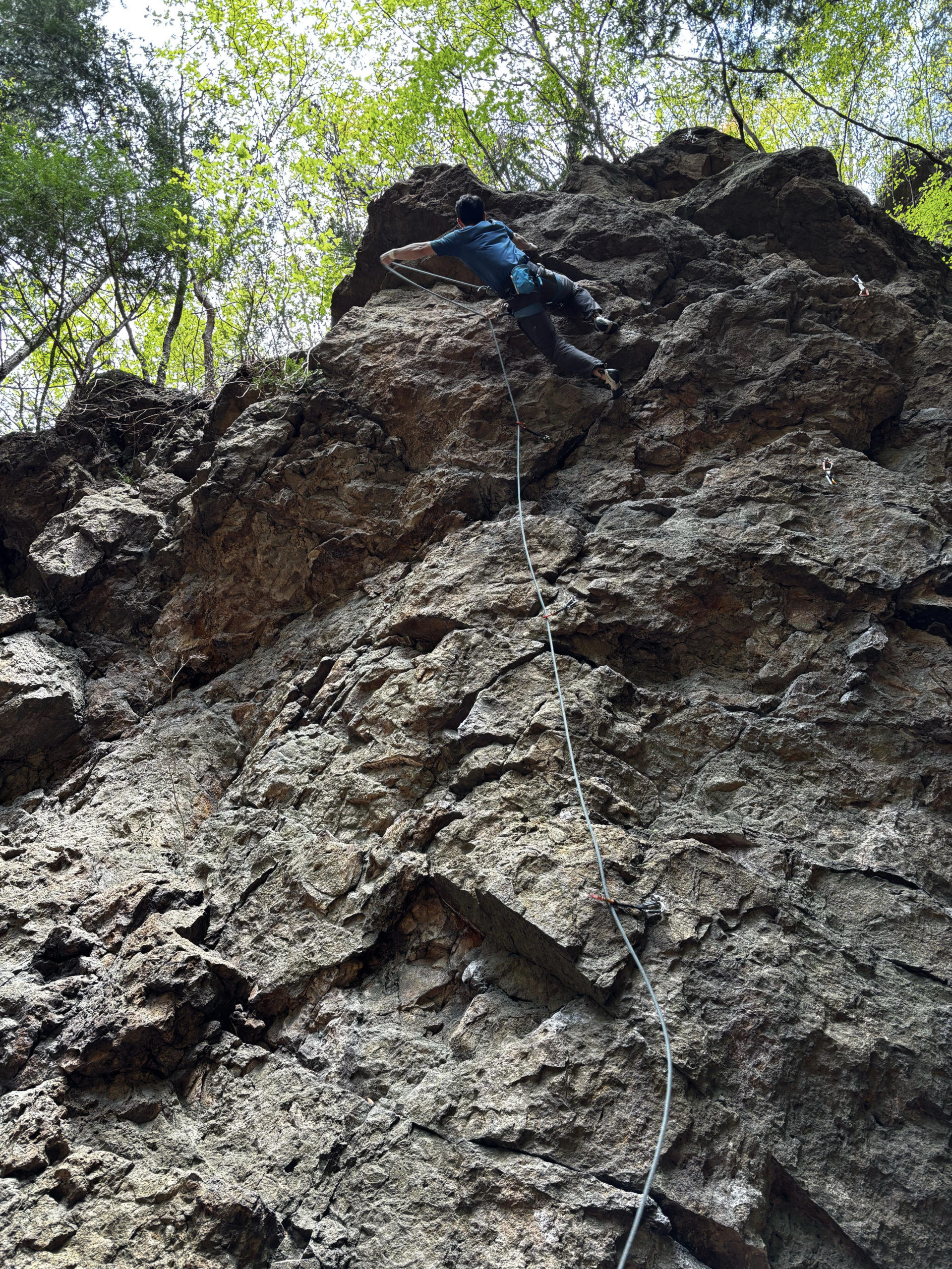 5.9のルートがすでに埋まっていたので、人のいない2峰下部南面にてアップ。まだ自分的に10bはアップのグレードじゃないと思って気合いが入ったけど、ガバも多く気持ち良く登れた。